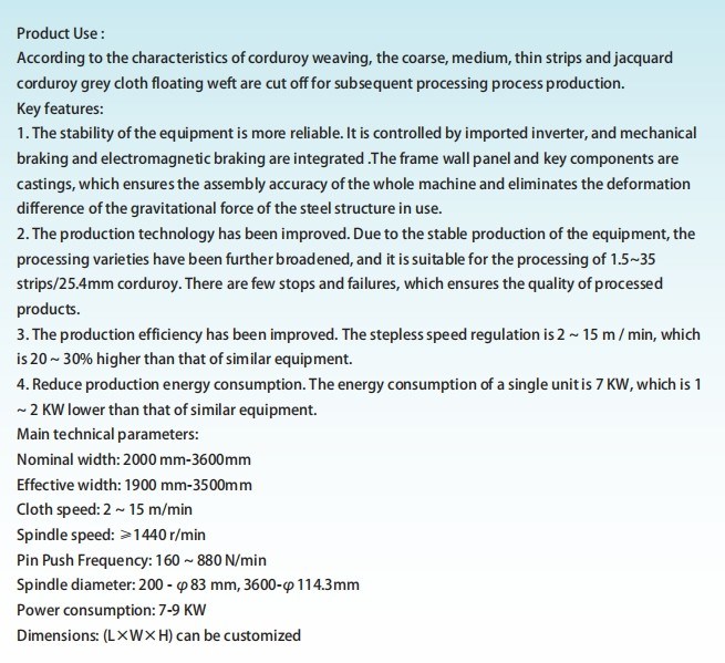 Máy cắt vải nhung 3000mm Công nghiệp máy dệt
